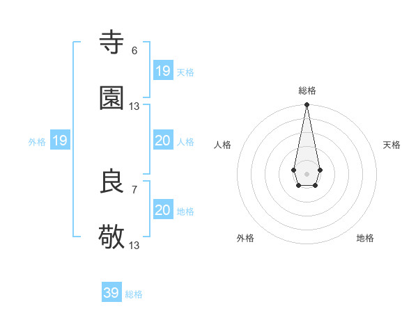 寺園 良敬さんの総格は39画の5点!