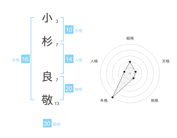 小杉 良敬さんを姓名の画数から五運を鑑定