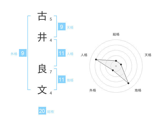 古井 良文さんの総格は20画の1点!
