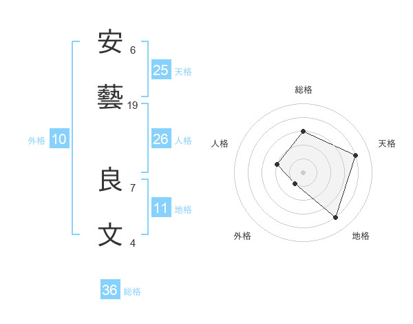 安藝 良文さんの地格は11画の4点!