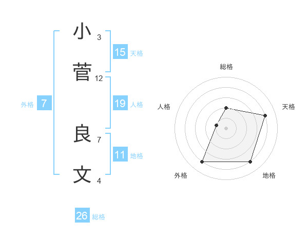 小菅 良文さんの総格は26画の2点!