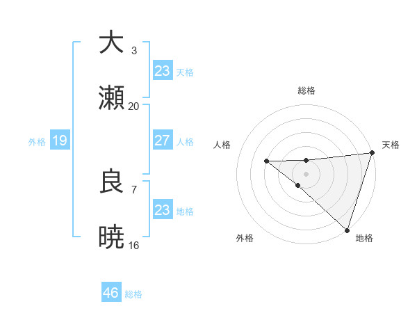 大瀬 良暁さんを姓名の画数から五運を鑑定