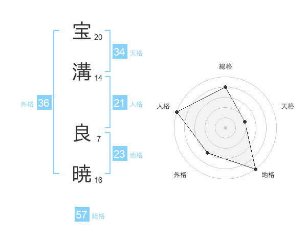 宝溝 良暁さんの総格は57画の4点!