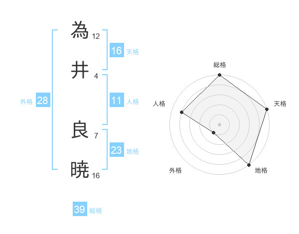 為井 良暁さんの天格は16画の5点!