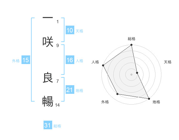 一咲 良暢さんの総格は31画の5点!