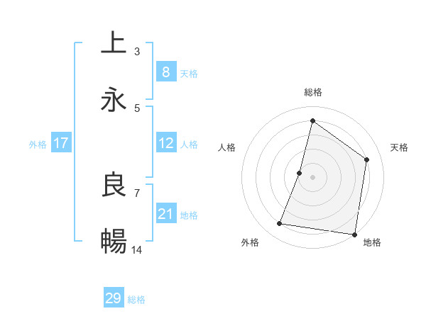 上永 良暢さんの総格は29画の4点!