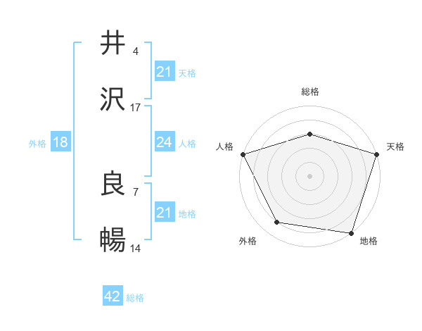 井沢 良暢さんの天格は21画の5点!