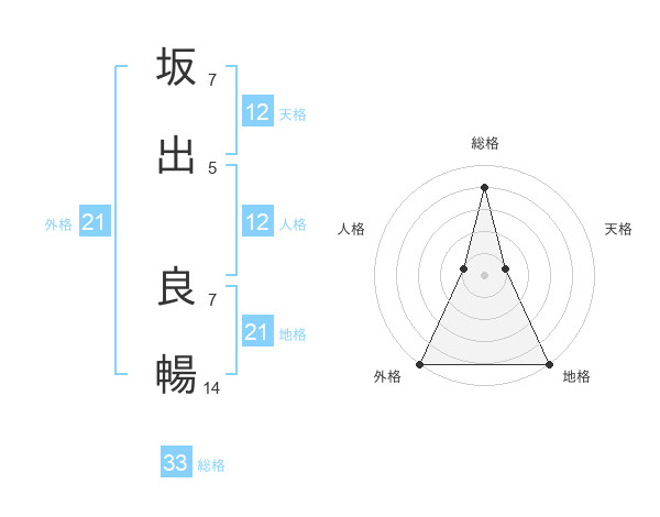 坂出 良暢さんを姓名の画数から五運を鑑定