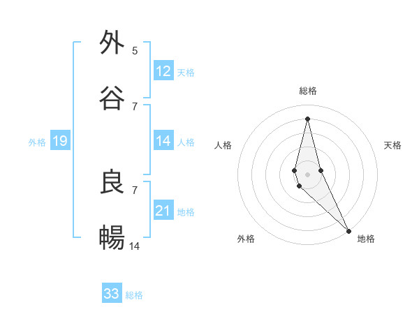 外谷 良暢さんの地格は21画の5点!