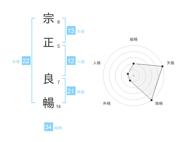 宗正 良暢さんの総格は34画の2点!
