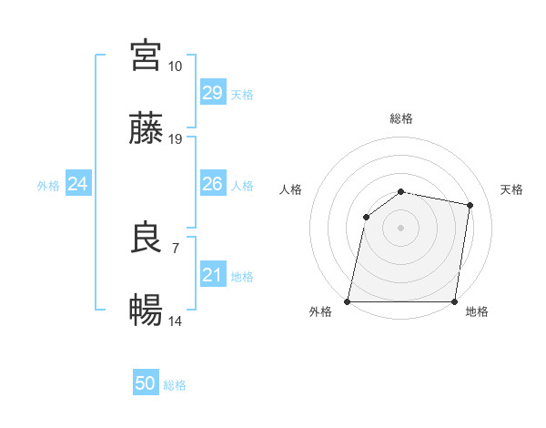 宮藤 良暢さんを姓名の画数から五運を鑑定
