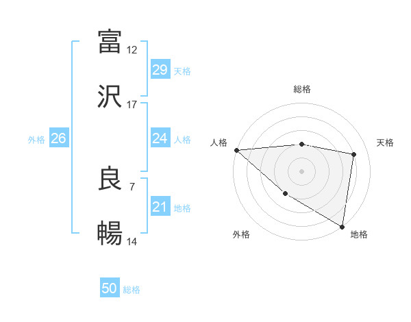富沢 良暢さんを姓名の画数から五運を鑑定