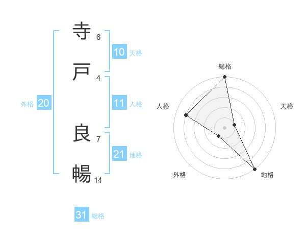 寺戸 良暢さんの総格は31画の5点!