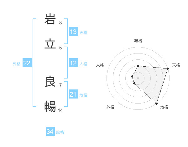 岩立 良暢さんを姓名の画数から五運を鑑定
