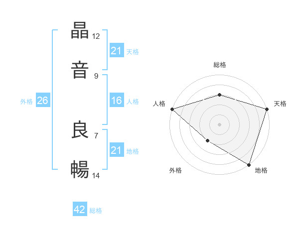 晶音 良暢さんの総格は42画の3点!