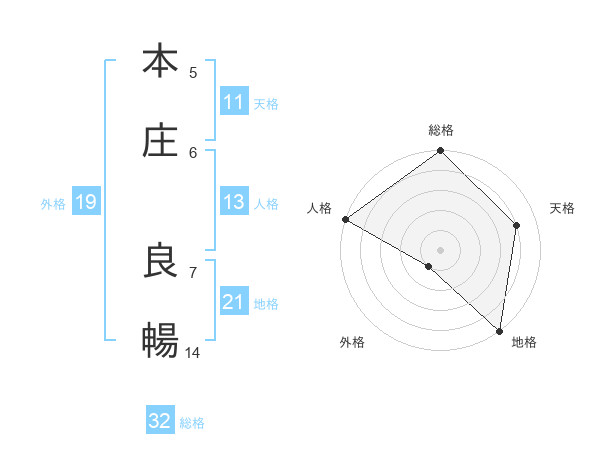 本庄 良暢さんを姓名の画数から五運を鑑定