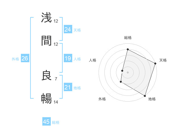 浅間 良暢さんを姓名の画数から五運を鑑定