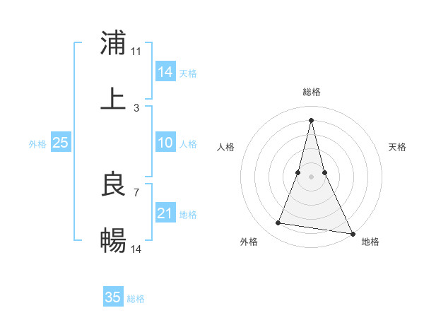浦上 良暢さんを姓名の画数から五運を鑑定