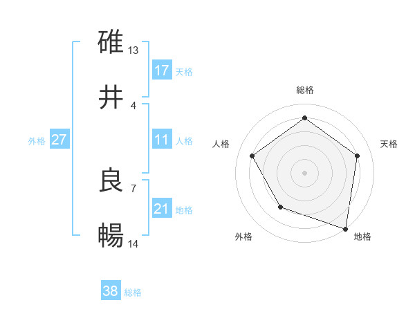 碓井 良暢さんを姓名の画数から五運を鑑定