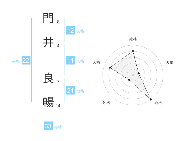 門井 良暢さんの総格は33画の4点!