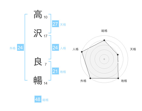 高沢 良暢さんの外格は24画の5点!