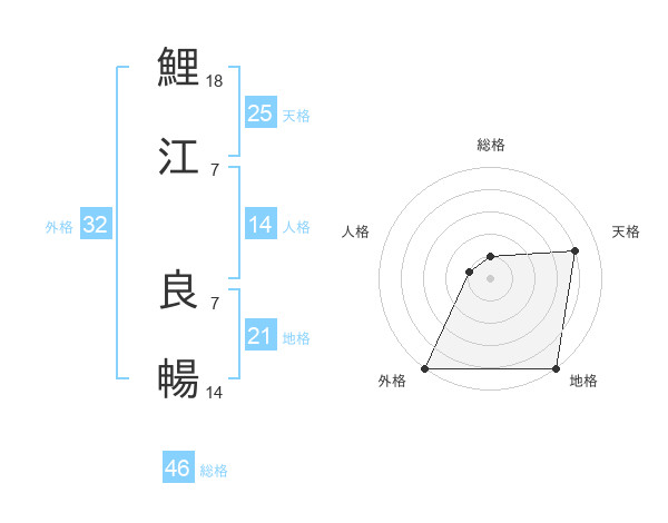 鯉江 良暢さんの総格は46画の1点!