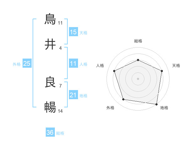 鳥井 良暢さんを姓名の画数から五運を鑑定