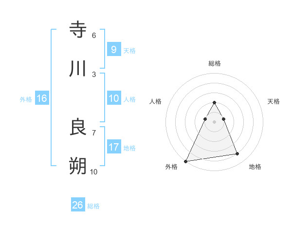 寺川 良朔さんの総格は26画の2点!