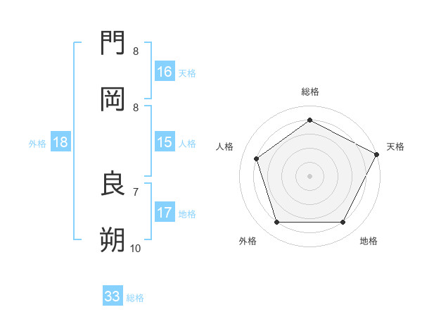 門岡 良朔さんの総格は33画の4点!