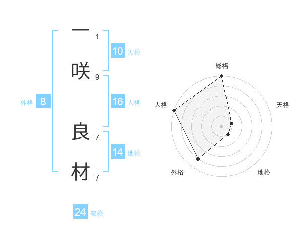 一咲 良材さんの総格は24画の5点!