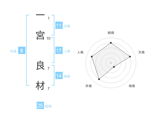 一宮 良材さんの総格は25画の4点!