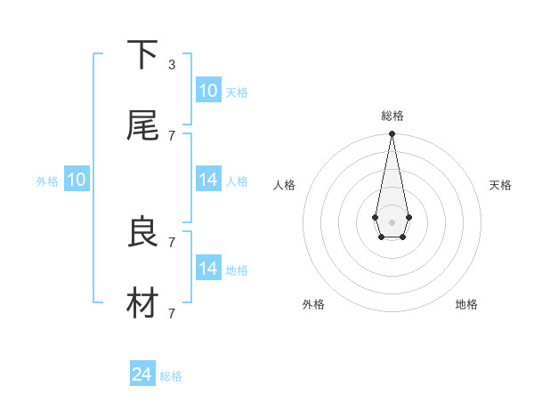 下尾 良材さんの総格は24画の5点!