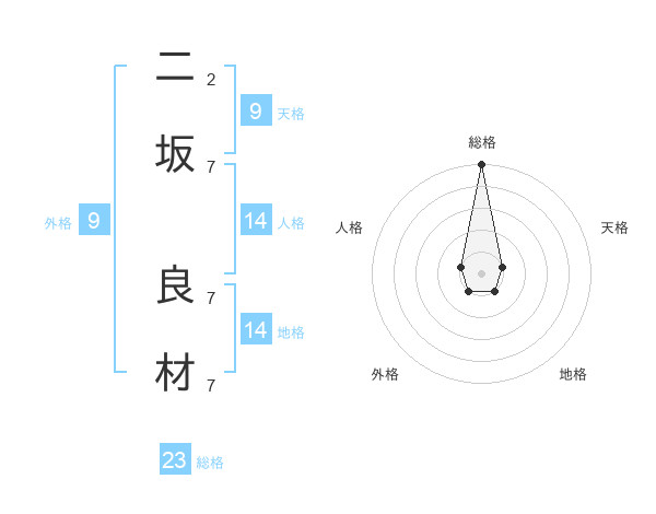 二坂 良材さんの総格は23画の5点!