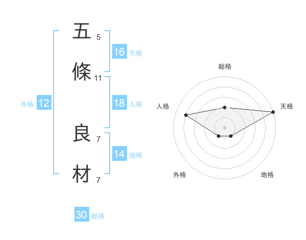 五條 良材さんの総格は30画の2点!