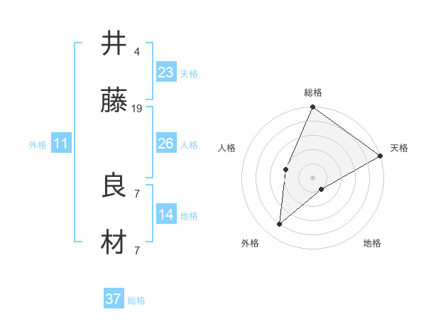 井藤 良材さんの総格は37画の5点!