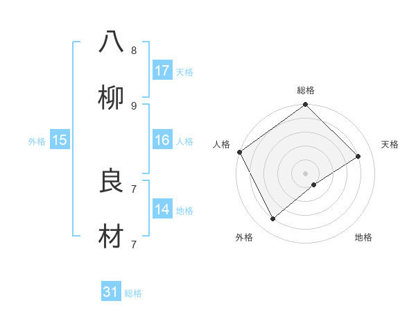 八柳 良材さんの総格は31画の5点!