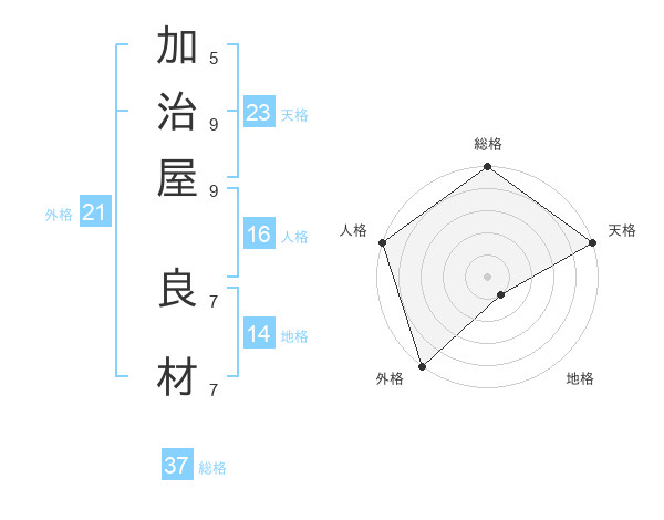 加治屋 良材さんの総格は37画の5点