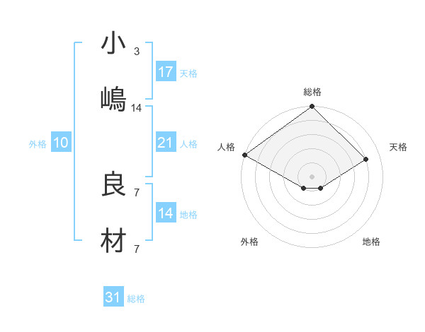 小嶋 良材さんを姓名の画数から五運を鑑定