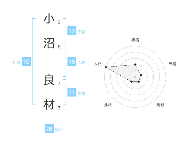 小沼 良材さんの総格は26画の2点!