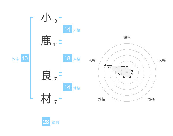 小鹿 良材さんの総格は28画の1点!