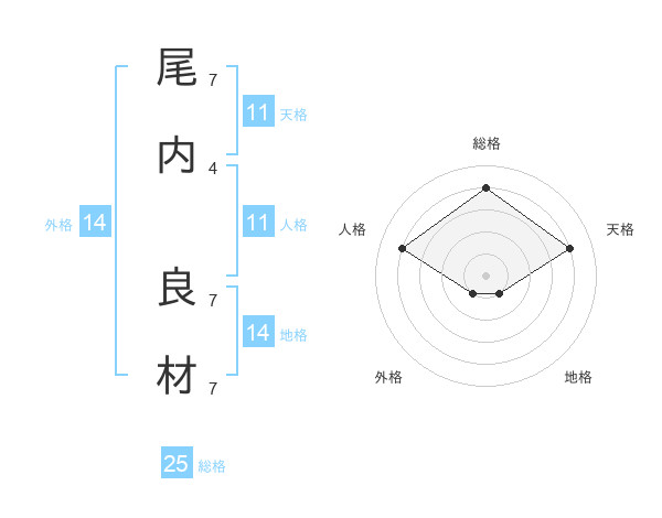 尾内 良材さんの総格は25画の4点!