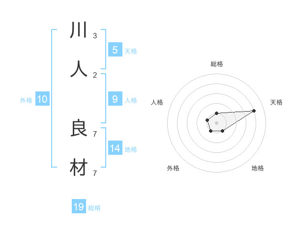 川人 良材さんを姓名の画数から五運を鑑定
