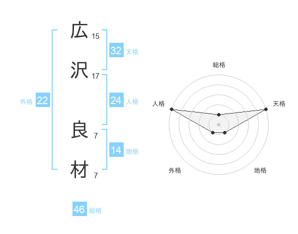 広沢 良材さんの天格は32画の5点!