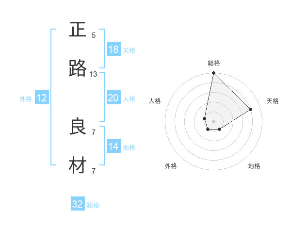 正路 良材さんの総格は32画の5点!