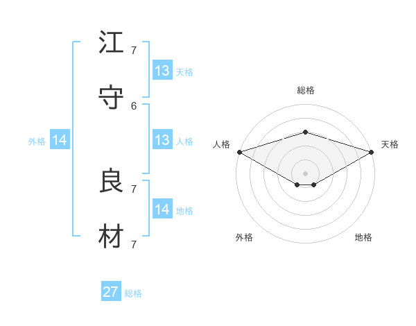 江守 良材さんの総格は27画の3点!