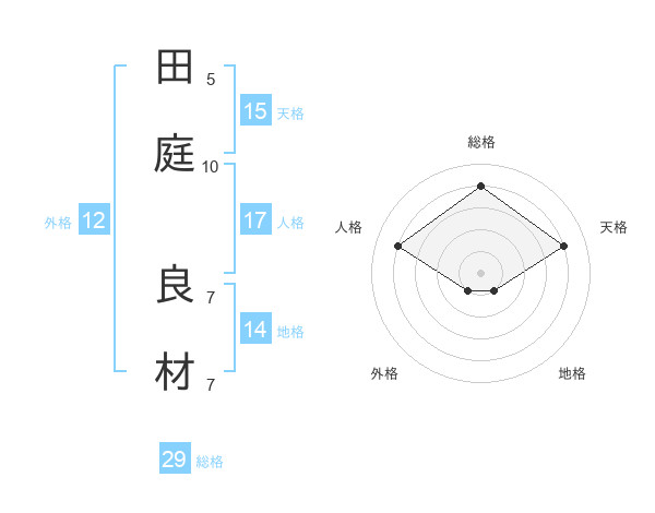 田庭 良材さんの総格は29画の4点!
