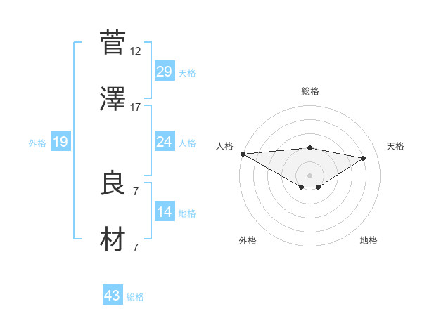 菅澤 良材さんの総格は43画の2点!