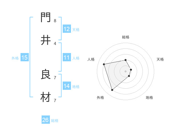 家系が持つ宿命的な運勢を表します。祖先から受け継いだ苗字ですので自分の力が及びません。家柄を象徴します。
