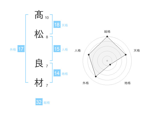 髙松 良材さんの総格は32画の5点!