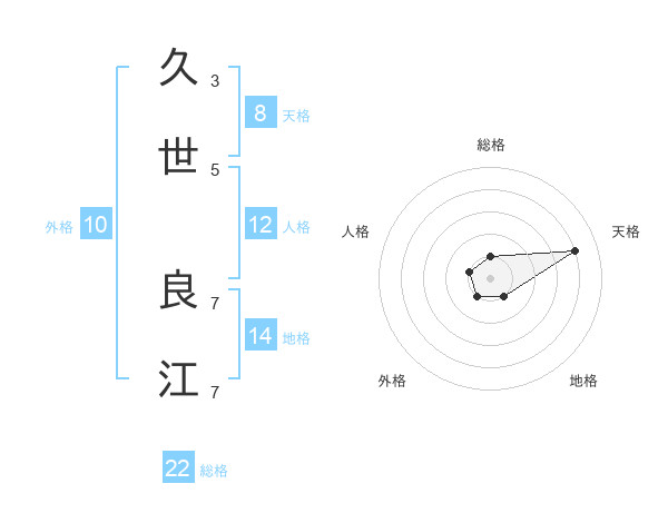 久世 良江さんの総格は22画の1点!
